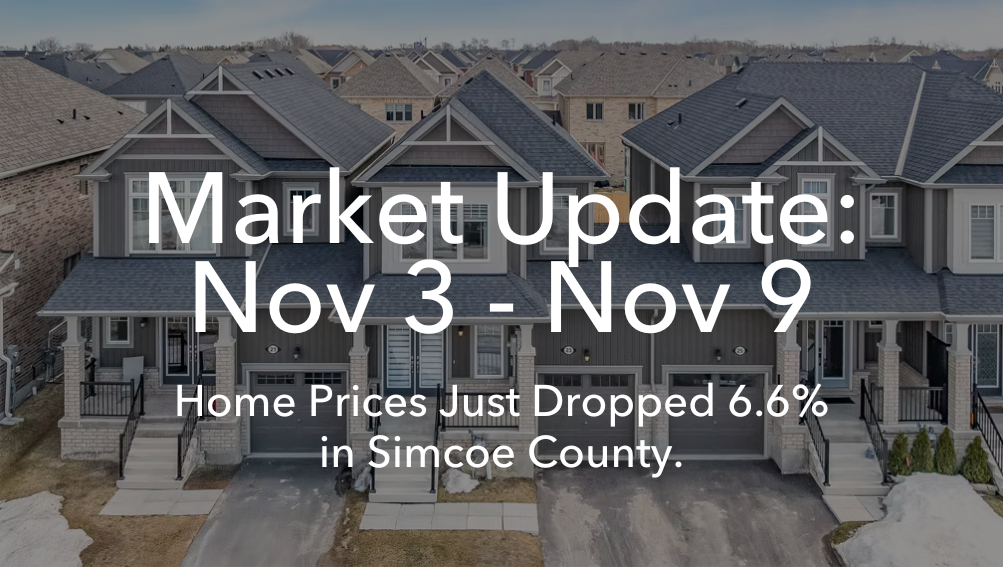 The Simcoe County real estate market saw a sharp cooldown this week, with sales falling nearly 20% and average prices dropping 6.6%. Inventory remains high, giving buyers more choice and negotiating power as we head deeper into November.