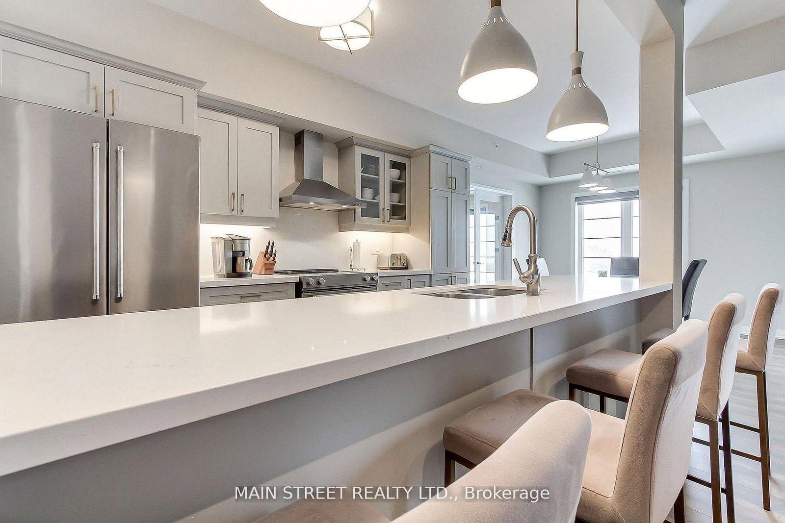 Welcome to 20 Koda Street, Unit 402, a stunning top-floor condo in the heart of Barrie offering 1,464 sq. ft. of beautifully upgraded living space. This spacious corner unit boasts an open-concept layout with abundant natural light, featuring modern finishes and thoughtful upgrades throughout. The upgraded kitchen showcases quartz countertops, stainless steel appliances, a stylish backsplash, and extended cabinetry-perfect for cooking and entertaining. The living area flows seamlessly to a private balcony with serene views, ideal for relaxing outdoors. With three generous bedrooms with bedroom 3 currently used as an office, upgraded flooring, custom lighting, and two full bathrooms including a luxurious ensuite, this condo combines elegance and comfort. Conveniently located near parks, shopping, schools, and Highway 400, this move-in-ready home is perfect for those seeking upscale condo living in one of Barrie's most desirable communities.