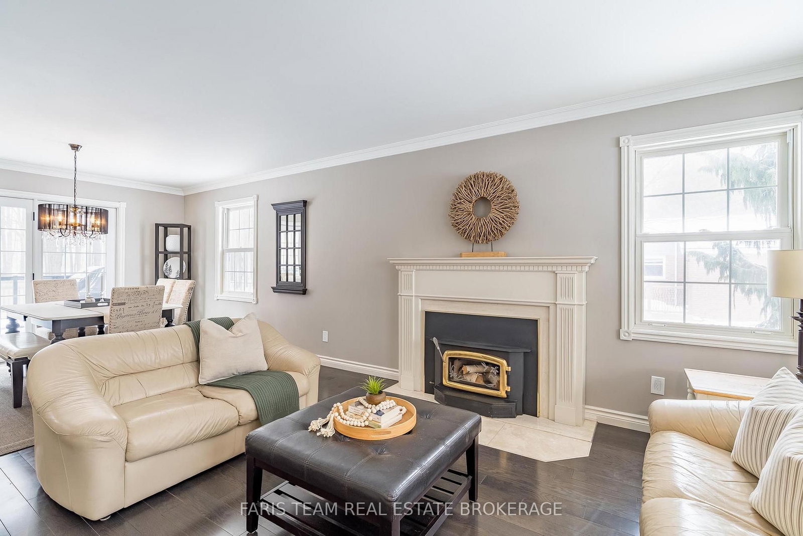 Designed with family living in mind, the home offers a bright and welcoming family room with a cozy gas fireplace, along with additional living and dining spaces warmed by the charm of a traditional wood insert