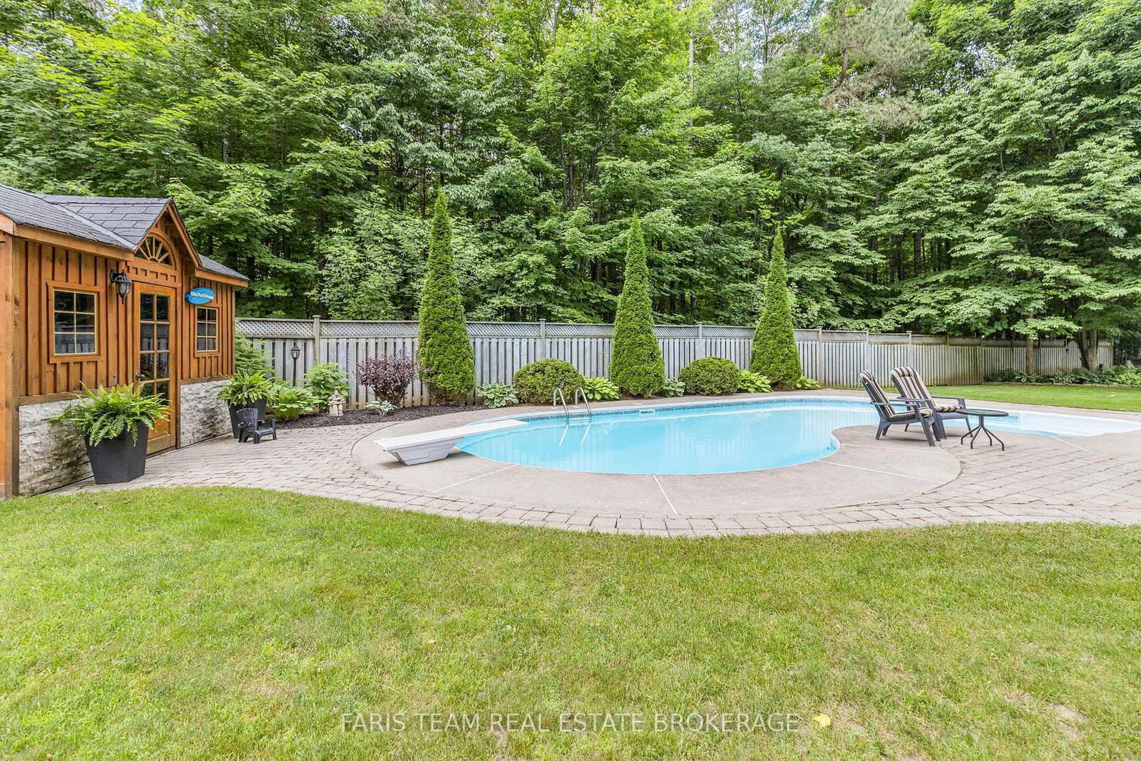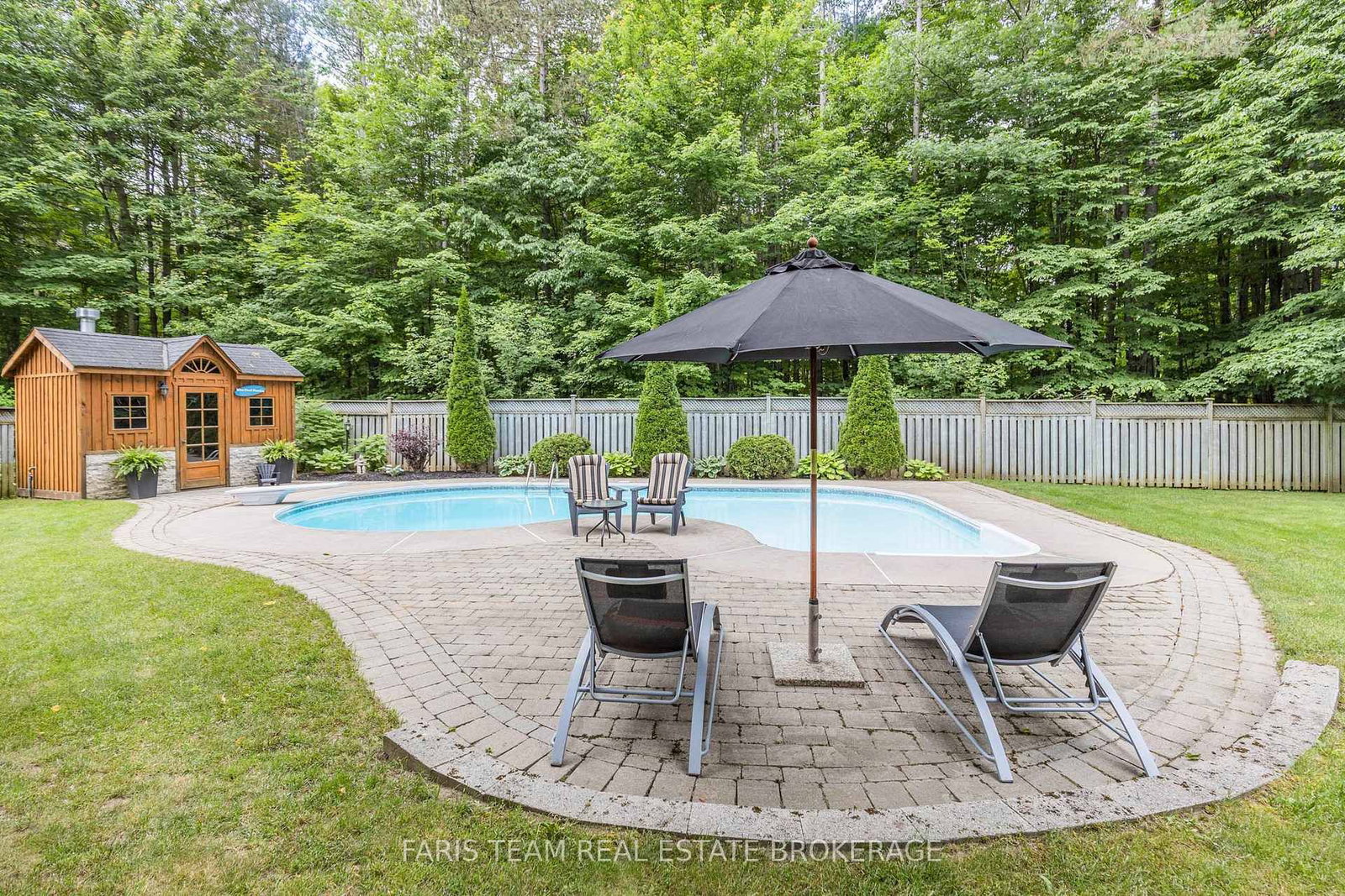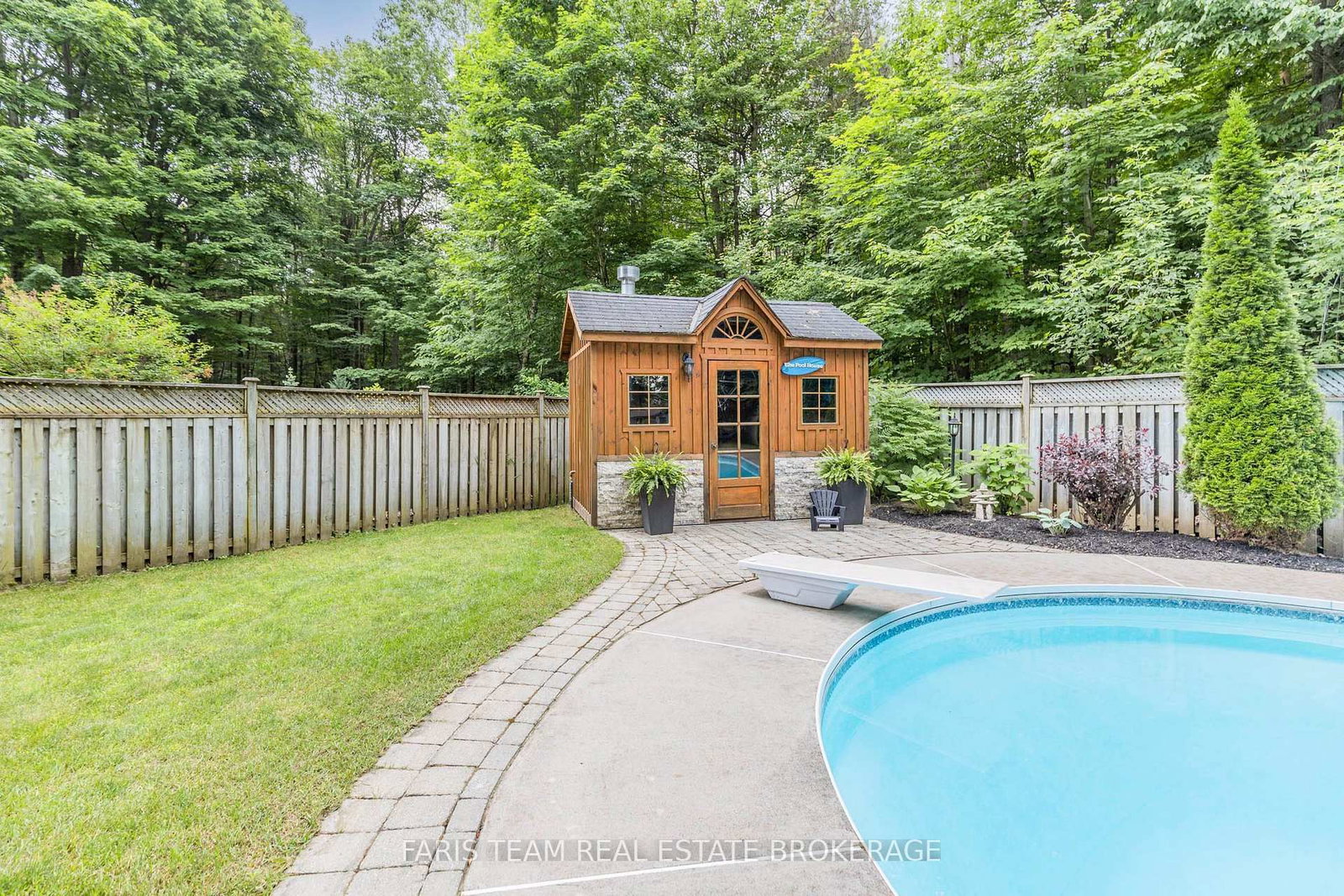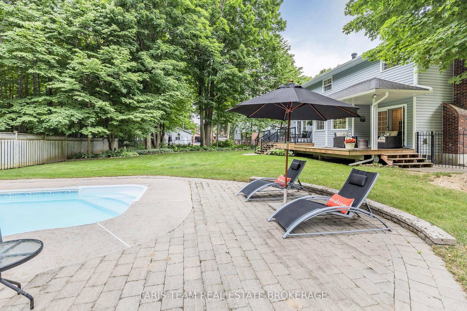 Tucked away in a private setting, the fully fenced backyard feels like your own personal retreat, complete with a heated inground pool, lush perennial gardens, and beautiful interlocking stonework designed for relaxing and entertaining