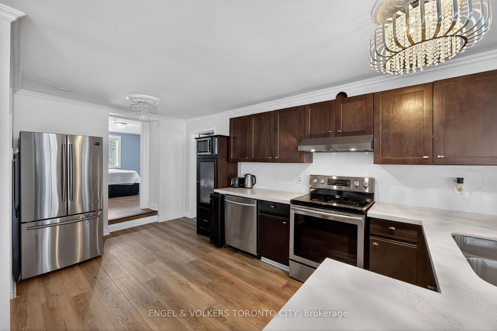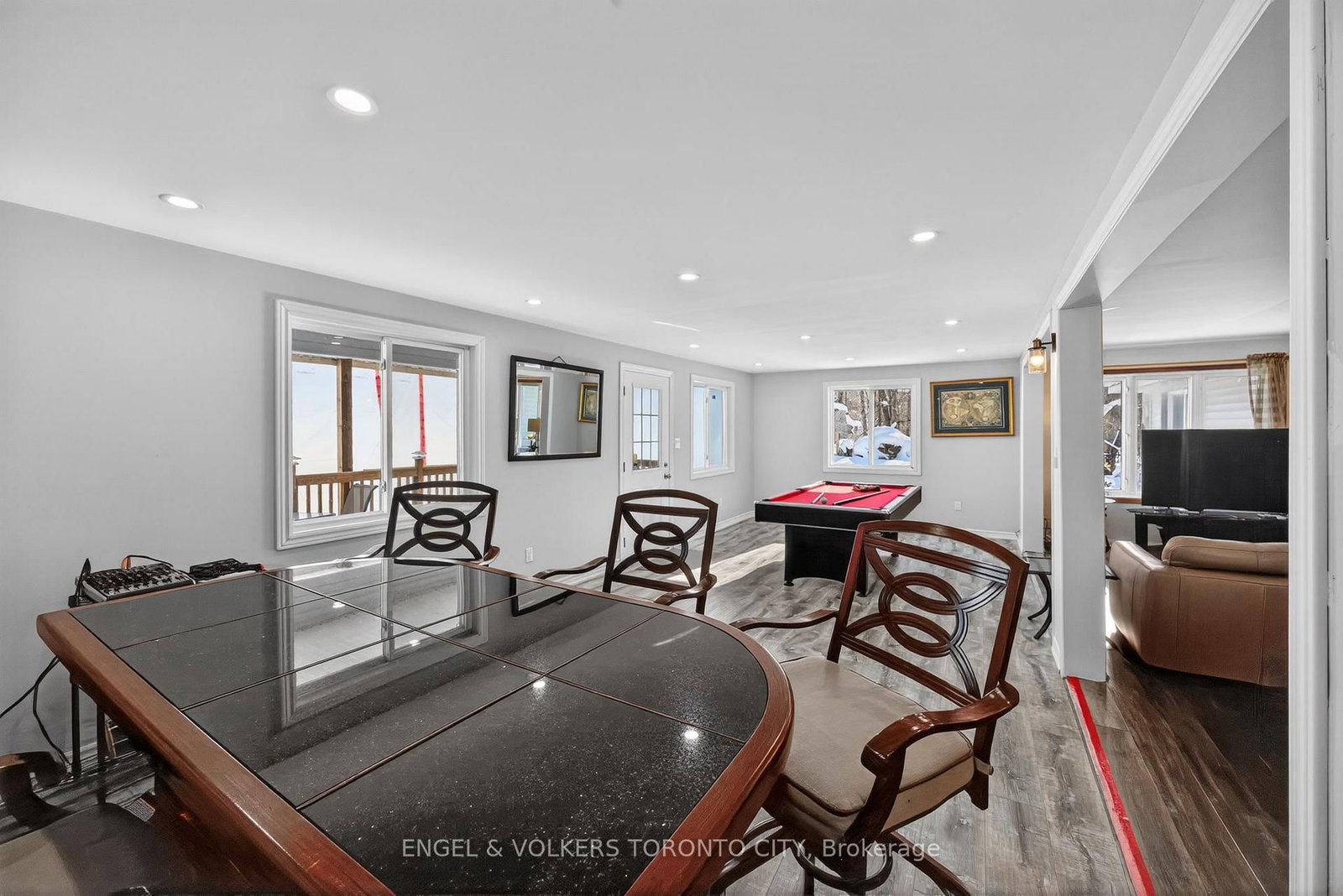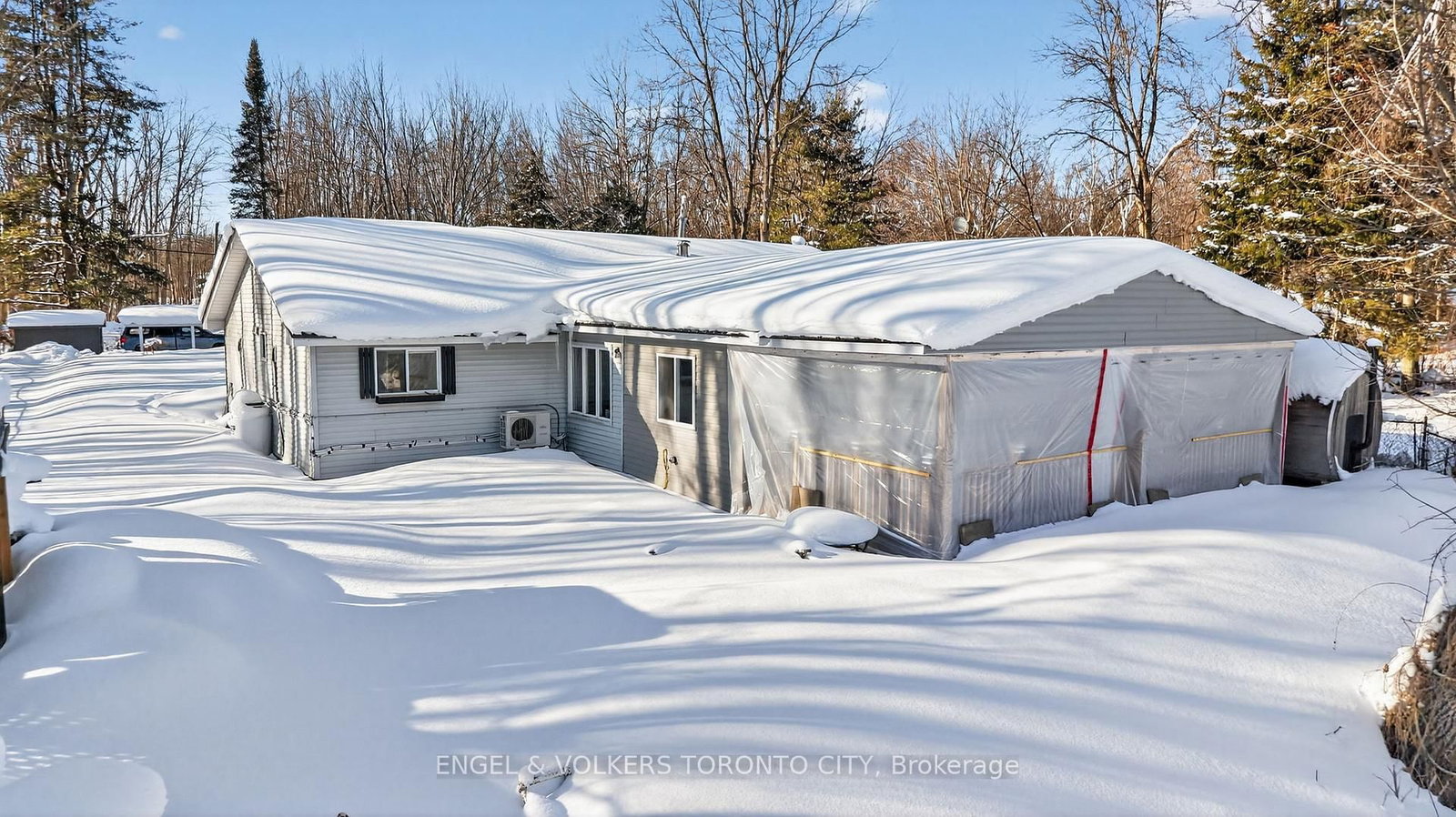 Welcome to this beautifully updated, furnished bungalow nestled on a quiet, private riverfront setting along the Black River. This inviting home offers a well-designed layout with a new addition that enhances both space and functionality, creating a comfortable environment for everyday living and entertaining.UPDATE since photos: the main living space now include 24 pot lights & matching consistant flooring.The renovated kitchen showcases quartz countertops, stainless steel appliances, and a double stainless steel sink, seamlessly flowing into the open-concept living area. Durable vinyl flooring, crown moulding, neutral finishes, and large windows fill the home with natural light. The living room features a cozy wood-burning stove, providing both charm and supplemental heating.The primary bedroom serves as a relaxing retreat, while the outdoor space truly sets this property apart. Enjoy peaceful views from the new, expansive deck, unwind in the barrel sauna, or take advantage of direct access to the river - with dock included! Mature trees surround the property, offering exceptional privacy and serene natural surroundings, with no neighbours directly across the river. Additional features include a metal roof, municipal water connection, fibre internet, and ample parking with a metal carport + concrete pad. and oversized driveway. Conveniently located near Highway 11, County Road 169, schools, parks, a community centre, and local amenities, this riverfront property offers a rare opportunity to enjoy a tranquil lifestyle without sacrificing accessibility. A special place to call home.