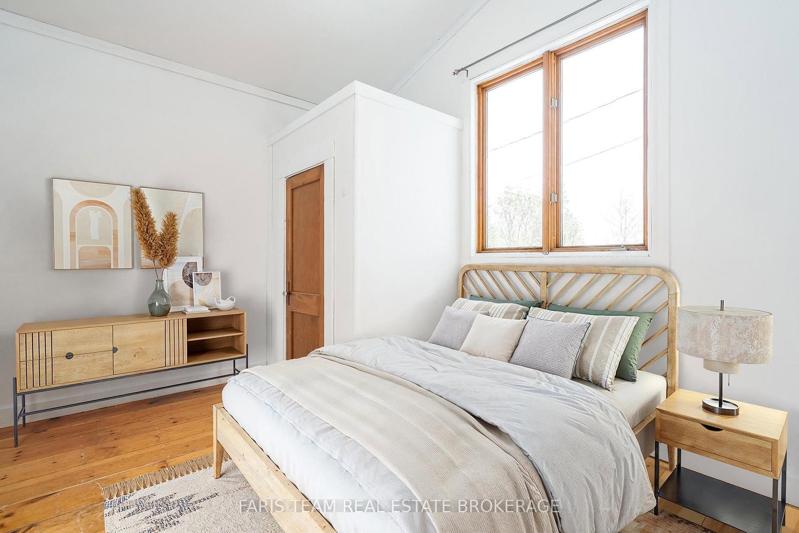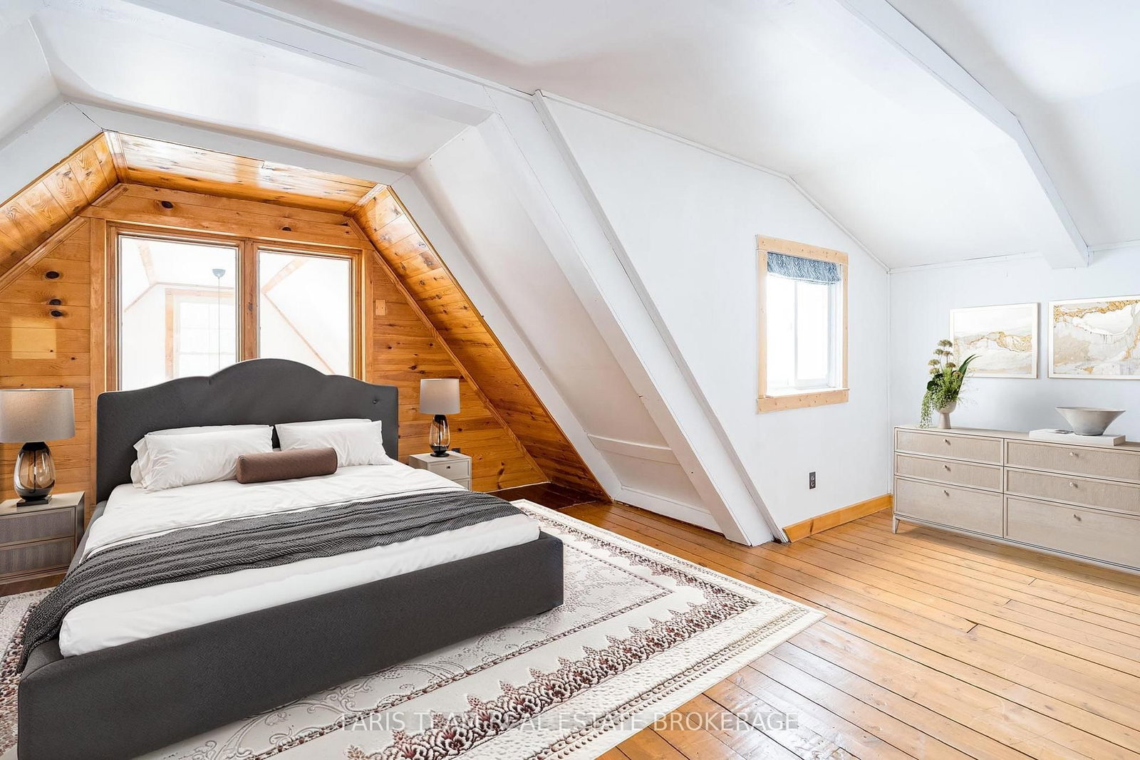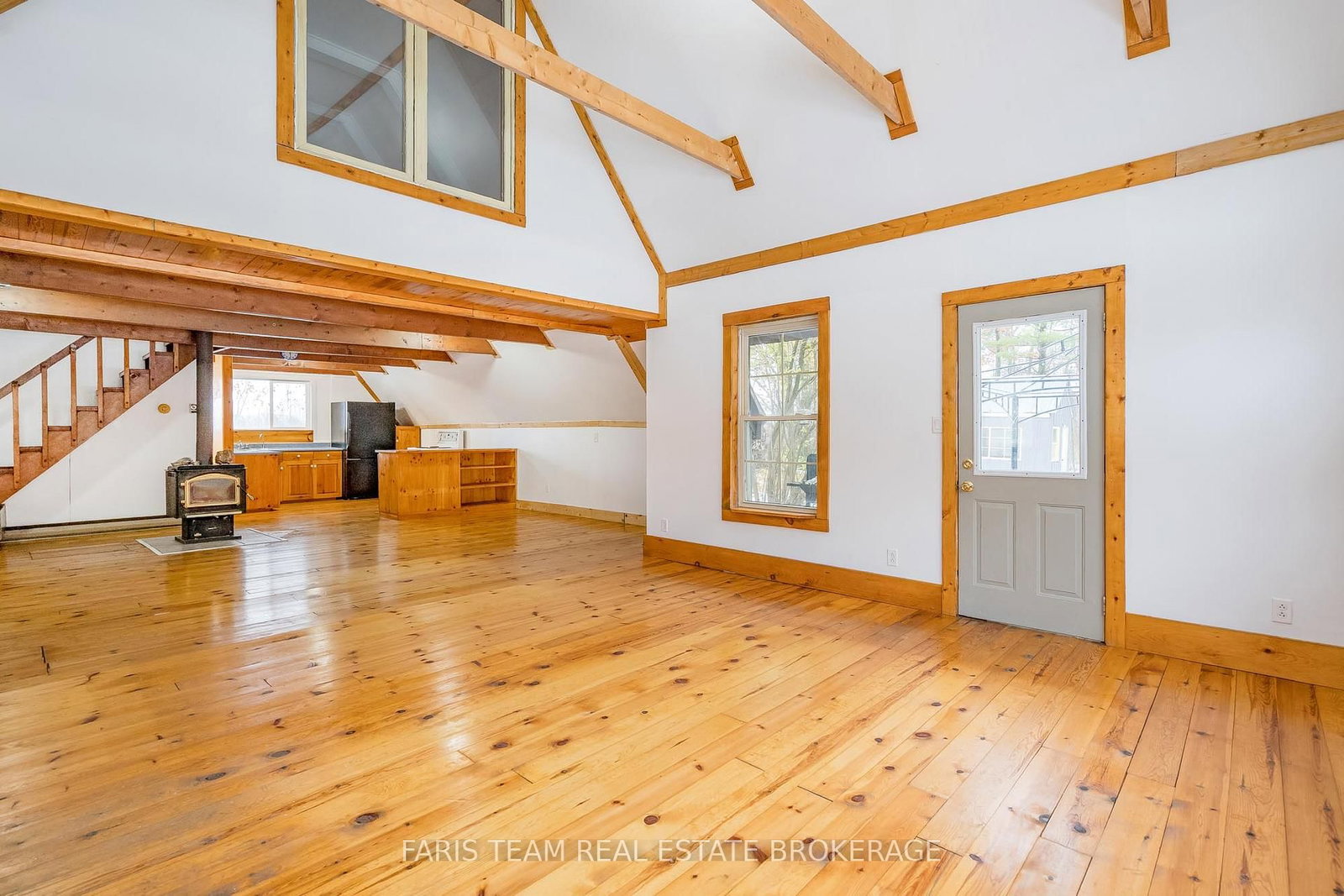 The main three bedroom, one bathroom cottage exudes rustic charm with exposed wood beams, vaulted ceilings, and sun-filled windows that bring the outdoors in, mixing cozy comfort and natural warmth for year-round living or weekend getaways