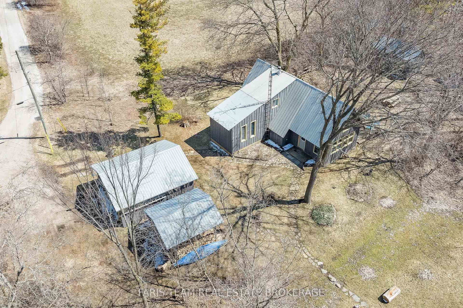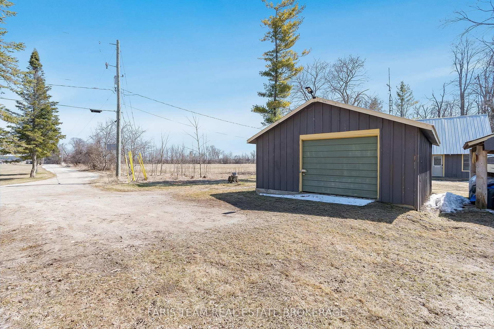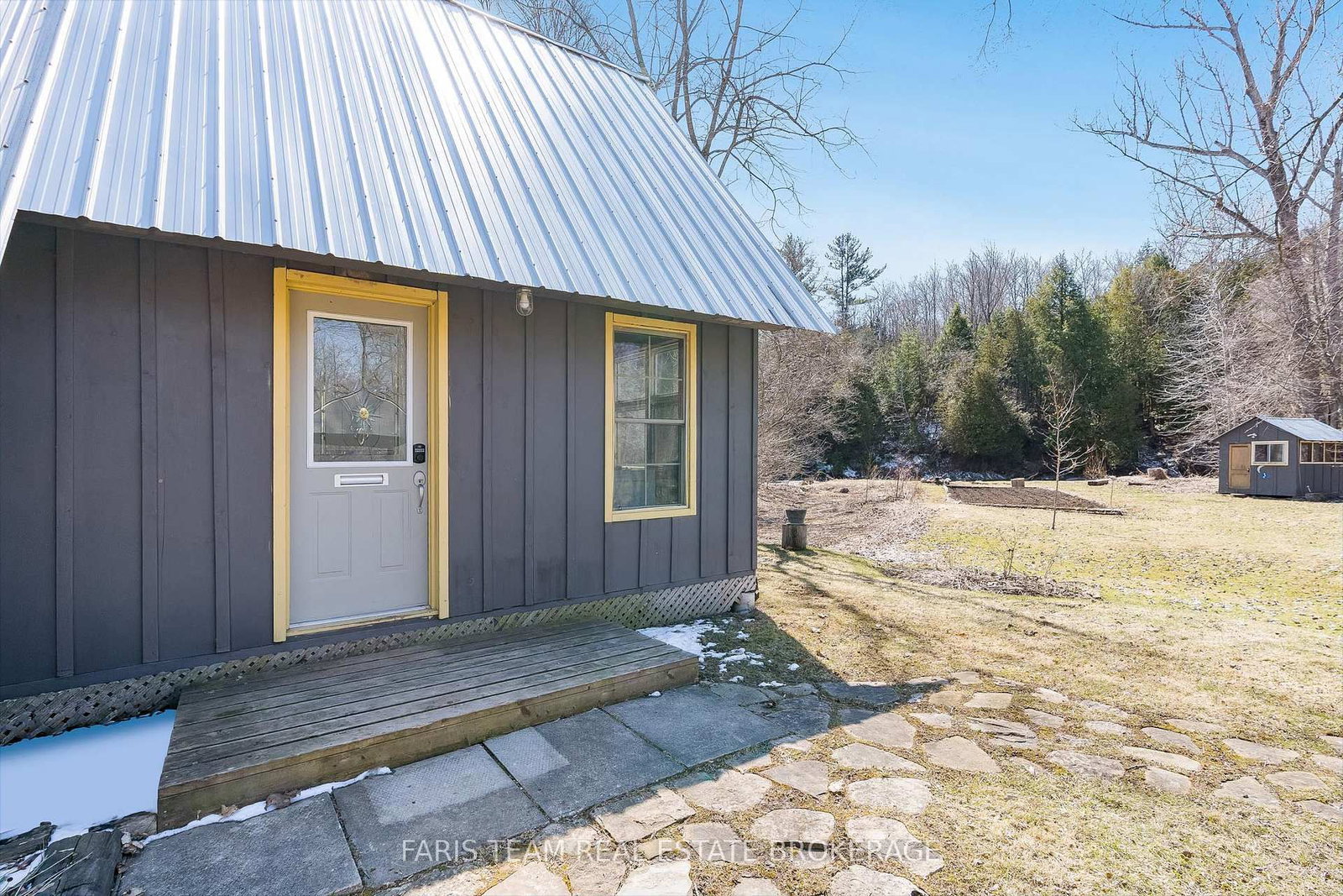 A detached garage provides a full workshop at the front and a powered bunkie at the back, ideal for hosting guests or pursuing hobbies, while a nearby wood shed keeps firewood close at hand for cozy evenings